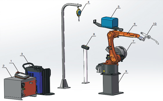 而完整的弧焊機器人系統(tǒng)應(yīng),包括機器人本體、控制系統(tǒng)、焊接裝置、焊件夾持裝置。夾持裝置上有二組可以輪番進入機器人工作范圍的旋轉(zhuǎn)工作臺。