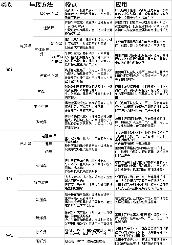 隨著制造業(yè)的高速發(fā)展,傳統(tǒng)的手工焊接已不能滿足現(xiàn)代高技術(shù)產(chǎn)品制造的質(zhì)量、數(shù)量要求,現(xiàn)代焊接制造技術(shù)正在向著機(jī)械化、自動(dòng)化、數(shù)字化的方向發(fā)展。近年來,焊接自動(dòng)化在實(shí)際工程中的應(yīng)用發(fā)展迅速,已成為先進(jìn)制造技術(shù)的重要組成部分。焊接技術(shù)的發(fā)展趨勢及其在智能制造中的影響。不同焊接方式的特點(diǎn)和應(yīng)用場景如下: