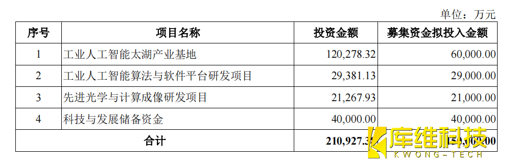 凌云光本次發行募集資金將投入以下四個項目:“工業人工智能太湖產業基地項目”、“