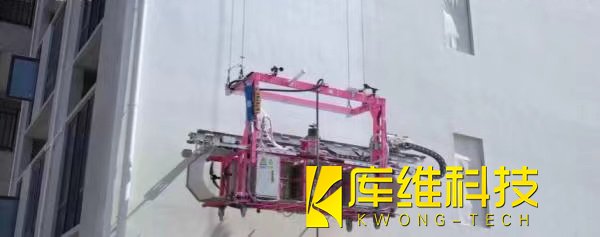 懸掛式布料機器人,這是今年剛在武漢投入使用的新型建筑機器人。它懸掛安裝于住宅造樓機下方,可以實現(xiàn)自主作業(yè)、精準分區(qū)布料,能提高工作效率15%以上。