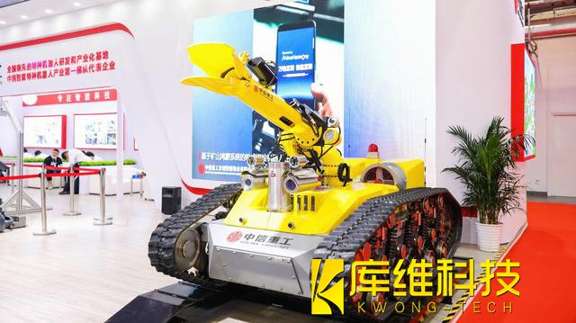 而在中信重工開誠智能展臺,一個仿佛“坦克”的履帶機器人也顯得頗為亮眼,展臺工作人員告訴貝殼財經記者,這臺機器人的“炮管”實際上是水炮的發射口,“我們用于高層滅火和危化環境的消防機器人噴水流量可達到200升每秒。”