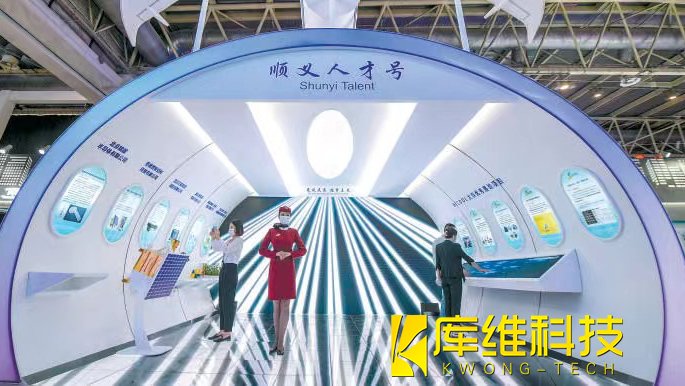 在順義展區(qū),模擬機(jī)艙的展臺(tái)“順義人才號(hào)”也頗為吸引眼球。走進(jìn)展臺(tái),就像走入機(jī)艙,兩側(cè)是優(yōu)秀項(xiàng)目介紹,前方大屏幕上的聲光電影講述著順義高端制造業(yè)的故事,代入感十足。
