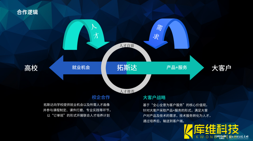 以大客戶產(chǎn)品+服務(wù)的合作模式為例,通過客戶端反饋的人才需求畫像,結(jié)合與高校開展聯(lián)合人才培養(yǎng)計劃,共同打造符合客戶崗位需求的人才,將技術(shù)服務(wù)轉(zhuǎn)化為人才,通過產(chǎn)品+人才打包的方式為客戶提供服務(wù)。