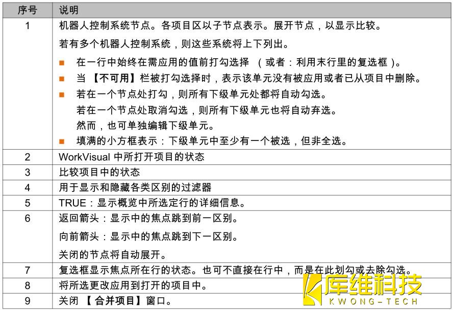 利用 【比較】功能可顯示已存項目與 KR C4 里現(xiàn)有項目之間的差異。 為此,必須將 KR C4 在線項目與已在 WorkVisual 保存的相同項目同時打開。