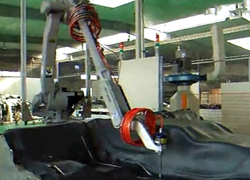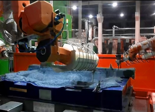 FA水切割,機(jī)器人可交替在兩個(gè)工位切割作業(yè),另一工位上下料,適合尺寸較大,精度要求高,復(fù)雜異形材料等切割加工,如車(chē)用頂棚、地毯等汽車(chē)內(nèi)飾件。
