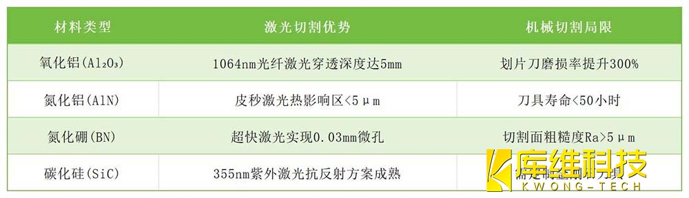 在陶瓷基板向??0.01mm級超薄化??、??2000孔/cm²超高密度??演進的今天,激光切割憑借其??精度無損、效率躍遷、成本可控??的三重優(yōu)勢,正成為高端制造的主流選擇。建議企業(yè)在5G基站、車規(guī)芯片等關鍵領域率先布局激光切割技術。