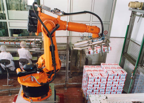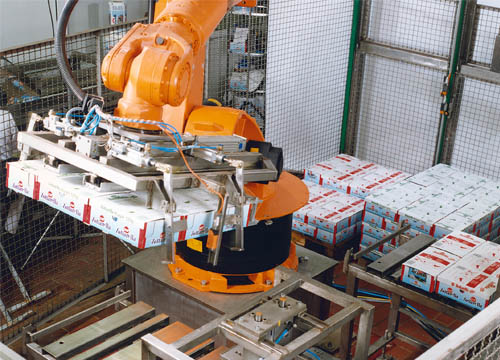 適用化工、建材、飼料、食品、飲料、啤酒、自動化物流等行業,配以不同抓手,可實現在不同行業各種形狀的成品進行裝箱和碼垛。